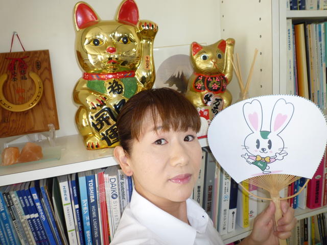 ラビーちゃんうちわ作ってみました、会社の招き猫ピカピカです。