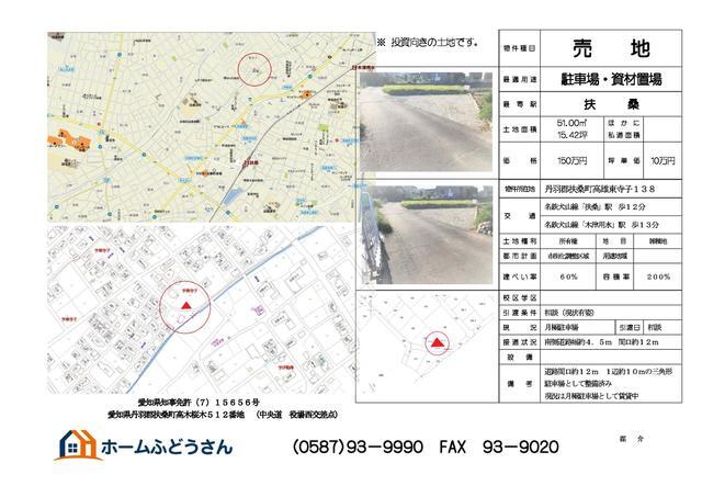 丹羽郡扶桑町大字高雄字東寺子 資材置場用地 丹羽郡扶桑町大字高雄字東寺子 | 540万円 9.02万円/坪 | 60% 200% | 198㎡ 59.89坪 なし | 現況渡し 資材置場用地 | ||