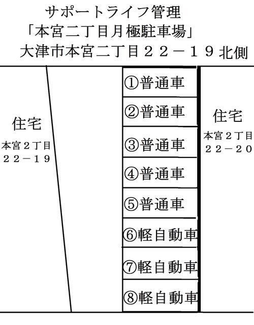 サポートライフ本宮月極駐車場 8 大津市本宮2丁目 琵琶湖線 膳所駅 徒歩10分 | 0.99万円 | なし 2ヶ月 | なし | 駐車場 | ||