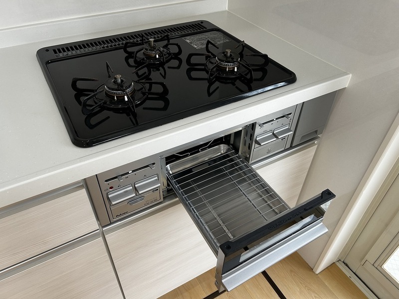 3口コンロで作業台も広く使用しやすいキッチンです! 食洗器もあり家事の手助けをしてくれます♪