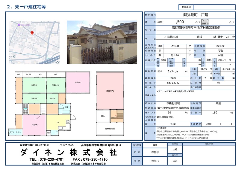 1,500万円 | 土地面積公簿 297㎡ 私道負担面積なし 土地権利所有権 |