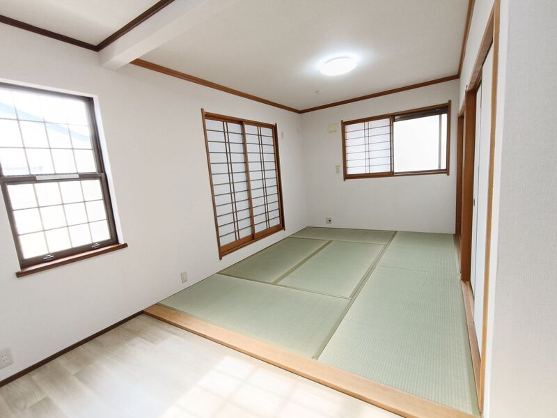 2階10.5帖和洋室。窓が3か所あり明るい空間です。