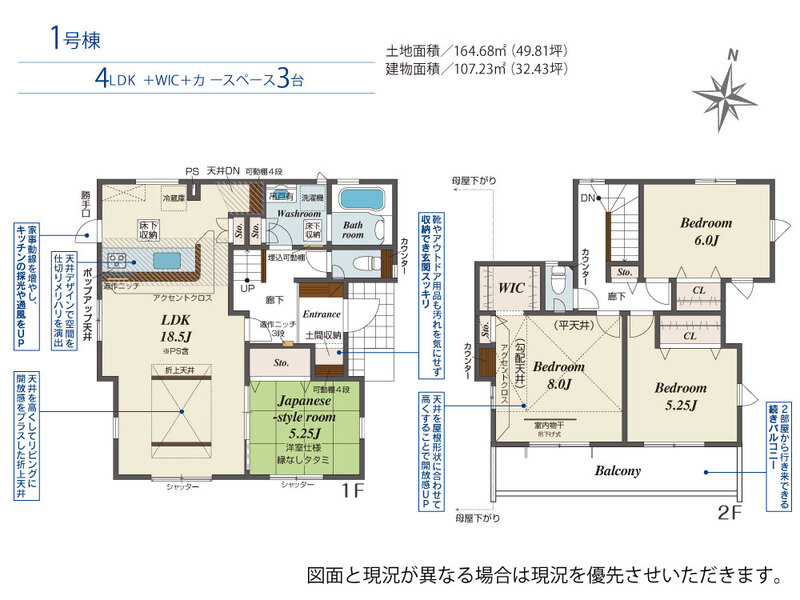 間取4LDK 建物面積壁芯 107.23㎡ 構造木造 | 物件種目戸建住宅 築年月2025年10月1日(築0年2ヶ月) |