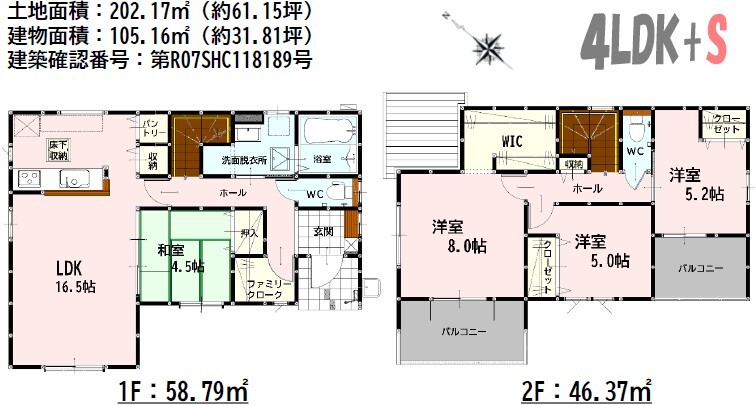 間取4SLDK 建物面積内芯 105.16㎡ 構造木造 | 物件種目戸建住宅 築年月2026年1月(築0年1ヶ月) |