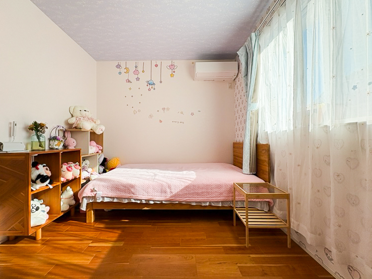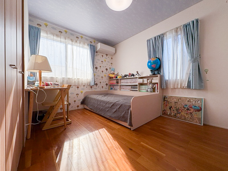 壁や天井部分にはかわいらしいクロスを採用。お子様のお部屋として喜ばれます♪