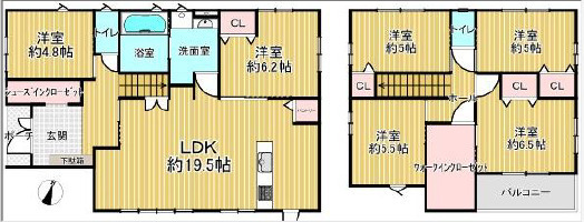 間取6SLDK 建物面積壁芯 127.83㎡ 構造木造 | 物件種目戸建住宅 築年月2019年12月(築6年2ヶ月) |