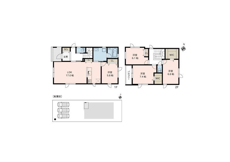 4LDK。駐車3台可。
