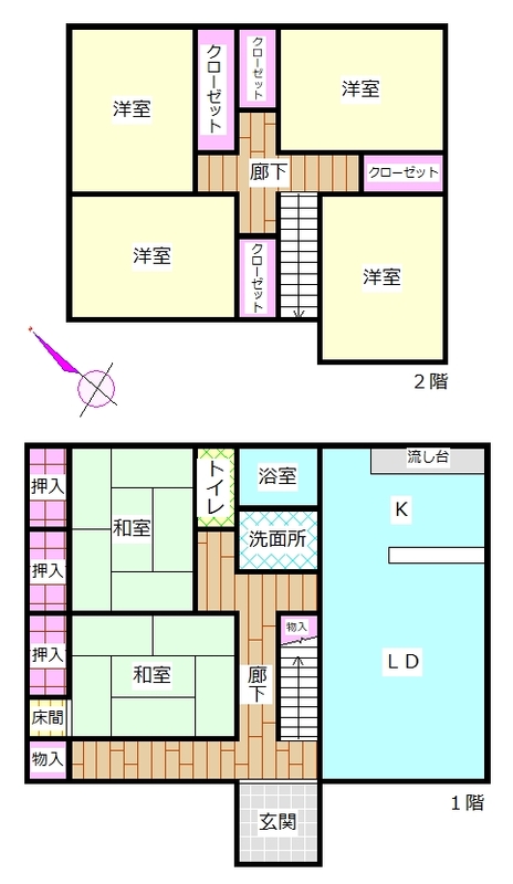 間取6LDK 建物面積壁芯 130.83㎡ 構造木造 | 物件種目戸建住宅 築年月1997年9月1日(築28年6ヶ月) |
