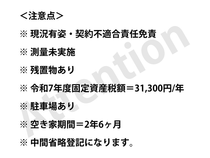 180万円 | 土地面積公簿 284.82㎡ 私道負担面積 土地権利所有権 |