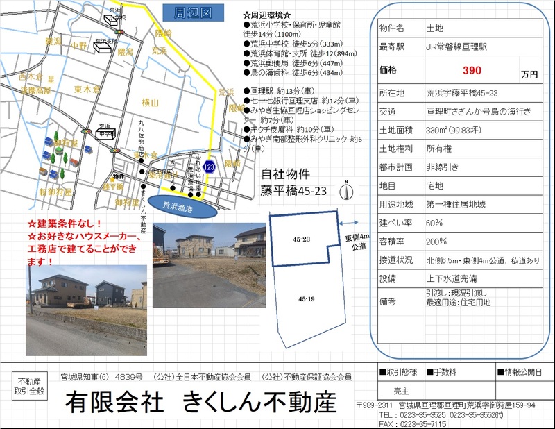 亘理郡亘理町荒浜字藤平橋(亘理駅)住宅用地印刷する