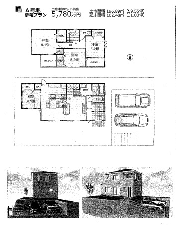 3,380万円 坪単価:56.76万円/坪 | 土地面積196.89㎡ 坪数59.55坪 私道負担面積なし |