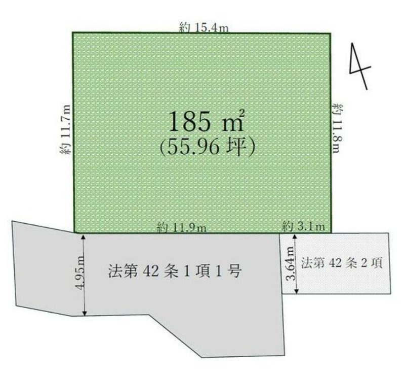 300万円 坪単価:5.37万円/坪 | 土地面積185㎡ 坪数55.96坪 私道負担面積なし |