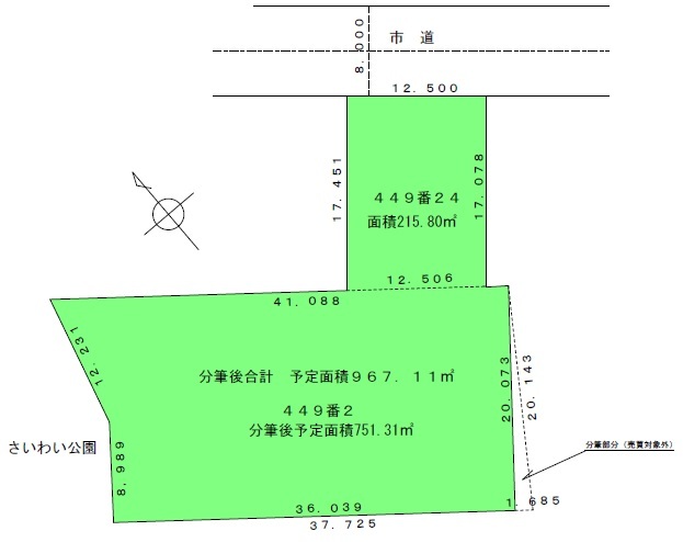 おすすめポイントさいわい公園・せせらぎ水路に隣接 自然環境良好な約292坪です。(分筆にて引渡となります。)建築条件無。