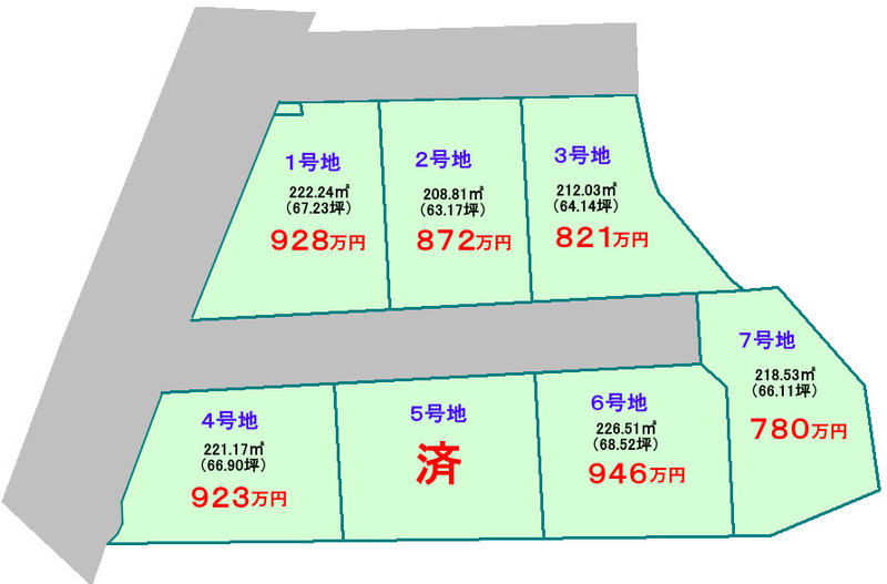 946万円 坪単価:13.81万円/坪 | 土地面積226.51㎡ 坪数68.51坪 私道負担面積 |