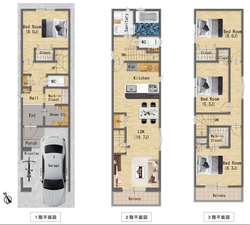 1,680万円 坪単価:99.12万円/坪 | 土地面積56.05㎡ 坪数16.95坪 私道負担面積なし |