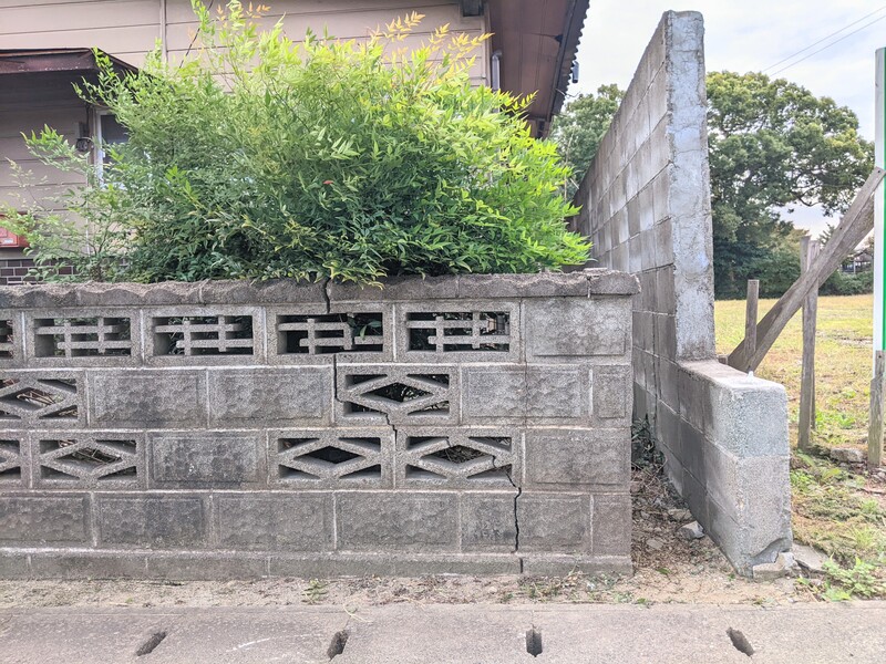 敷地南側の様子。境界にもとづき、ブロック塀は解体予定です。
