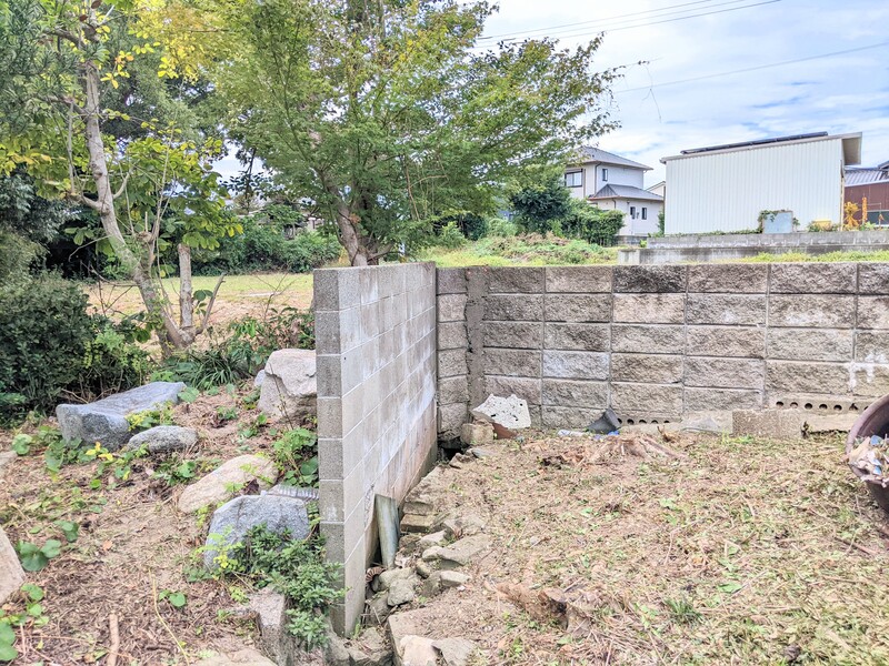 敷地東側の様子。境界にもとづき、ブロック塀は解体予定です。