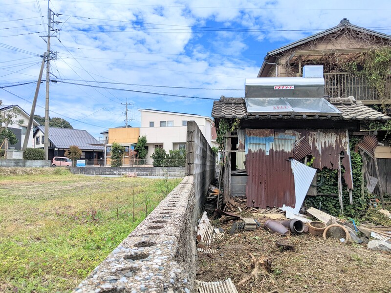 敷地北側前面の様子。建物解体後、更地での引渡しとなります。