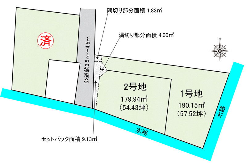 898万円 坪単価:15.62万円/坪 | 土地面積190.15㎡ 坪数57.52坪 私道負担面積 |