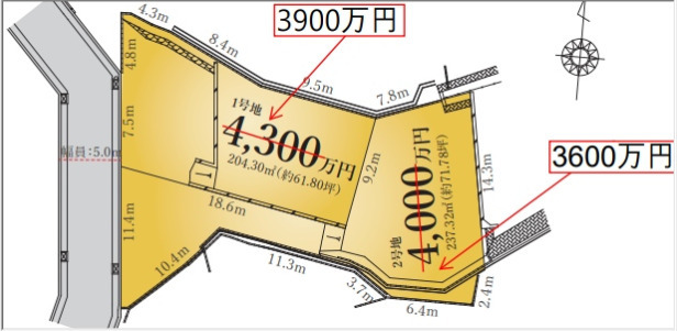 2,450万円 坪単価:74.14万円/坪 | 土地面積109.28㎡ 坪数33.05坪 私道負担面積 |