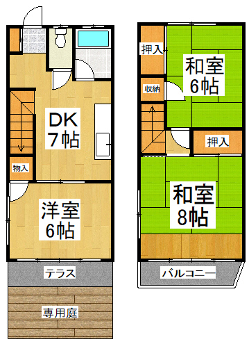 間取3DK 専有面積内芯 52.46㎡ 構造鉄骨造 | 物件種目タウンハウス 階建/階2階建/1階 築年月1978年7月中旬(築47年5ヶ月) |