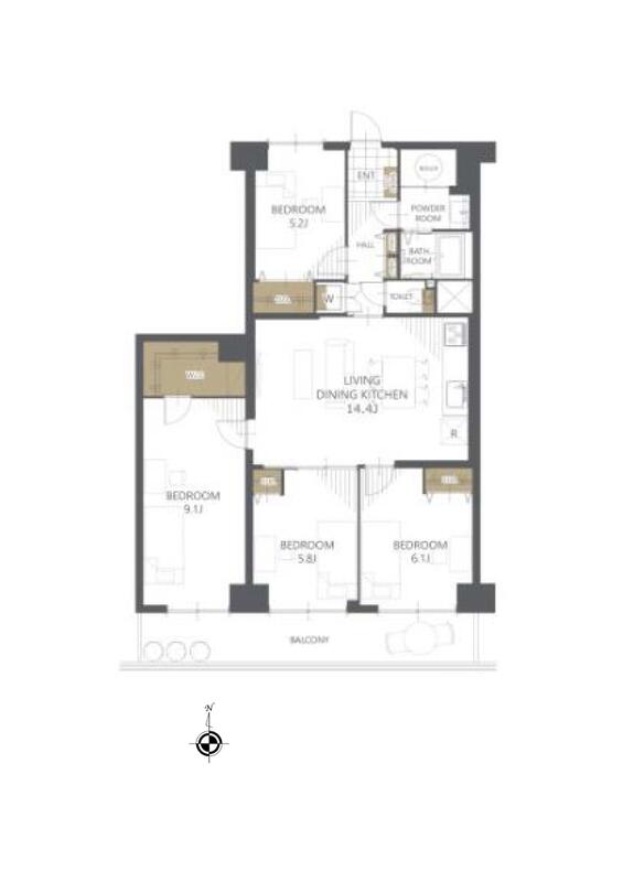 - 洋室 9.1帖 洋室 6.1帖 洋室 5.8帖 洋室 5.2帖 LDK 14.4帖