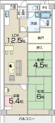 間取3LDK 専有面積壁芯 64.73㎡ 構造鉄筋コンクリート | 物件種目マンション 階建/階6階建/5階 築年月1975年4月(築50年8ヶ月) |