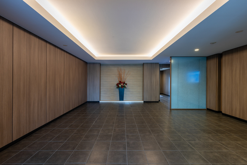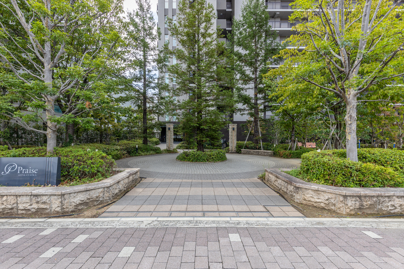 133戸の大規模マンションは、高級感あふれる上品なエントランスや緑豊かな敷地が魅力。