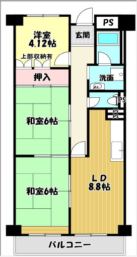 間取3DK 専有面積壁芯 58.37㎡ 構造鉄筋コンクリート | 物件種目マンション 階建/階7階建/4階 築年月1975年2月(築51年0ヶ月) |