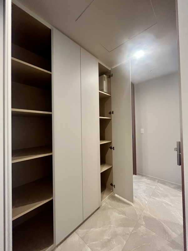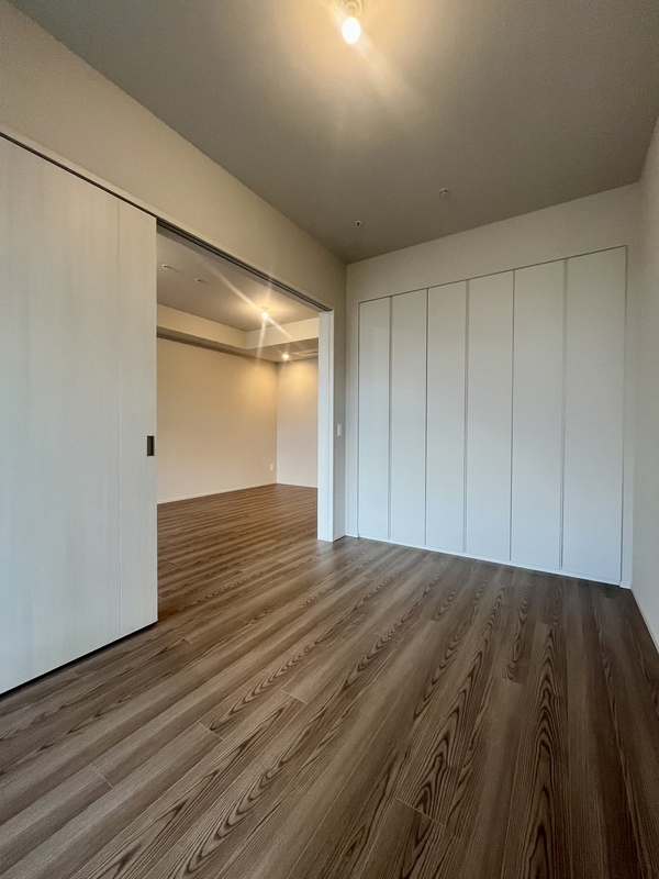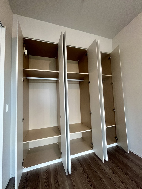 壁一面収納を備えた洋室。 居住空間を広く使える、収納力の高い設計です。