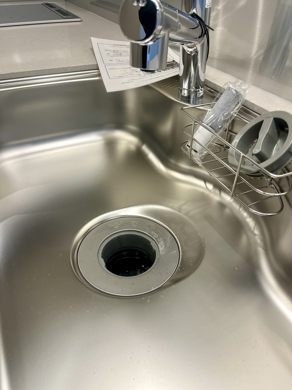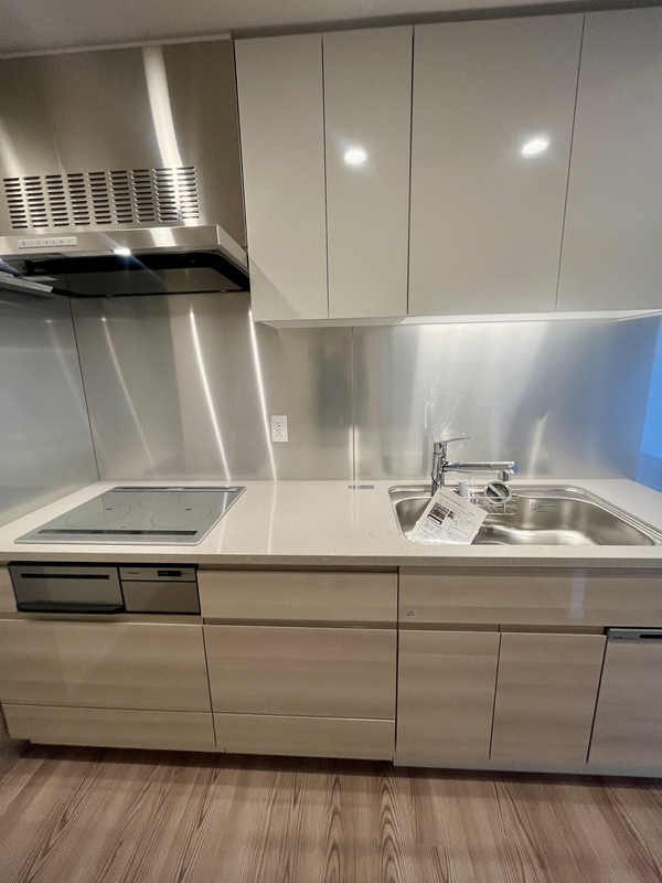 ディスポーザー・食器洗い乾燥機・浄水器を備えた機能的なシステムキッチン。 生活感を抑えた美しいデザインで、リビングとの一体感も魅力です。