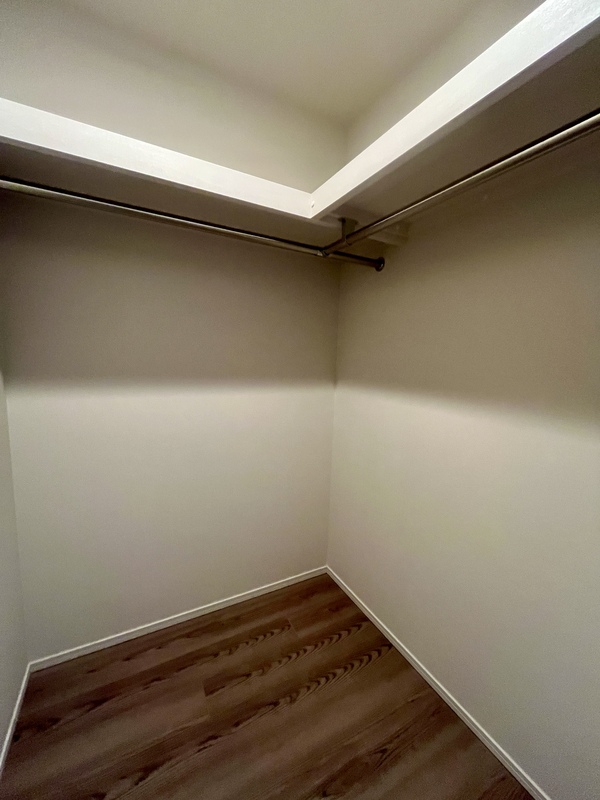 ウォークインクローゼットを備えた洋室。 居住空間を広く使える、収納力の高い設計です。