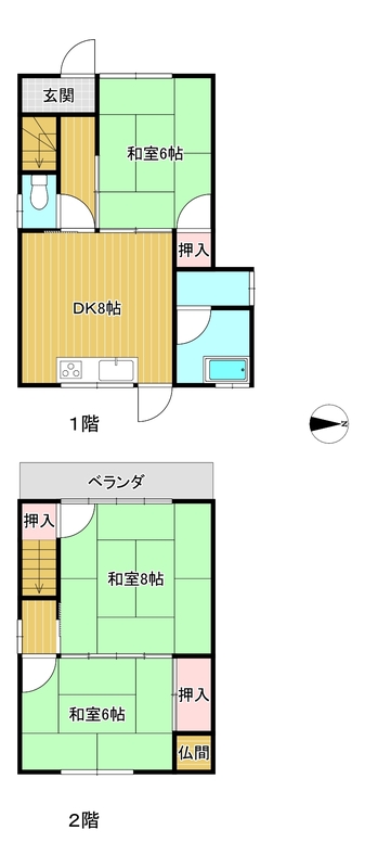 間取3DK 専有面積内芯 61.95㎡ 構造木造 | 物件種目テラスハウス 階建/階2階建/ 築年月1976年8月6日(築49年4ヶ月) |