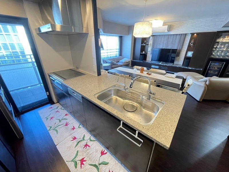 食器洗い乾燥機・3口コンロ・グリル付きの対面式システムキッチン!IHクッキングヒーターですので、お手入れ楽々です♪