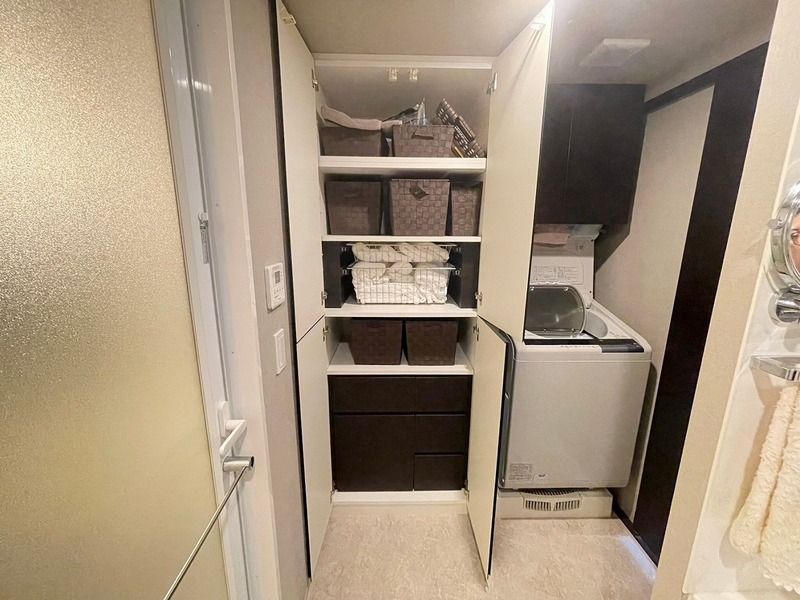 室内洗濯機置き場・リネン庫付きの洗面スペース!