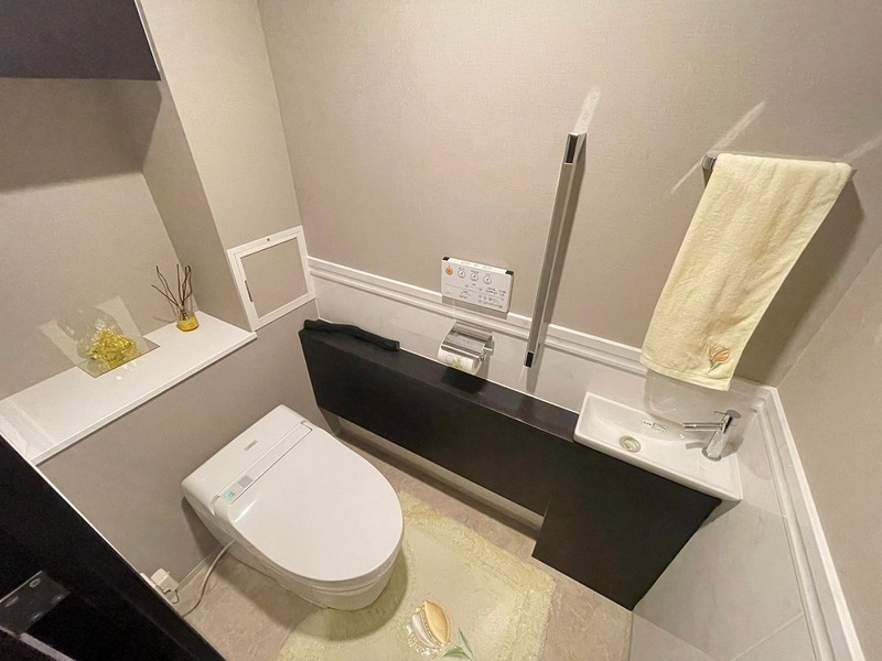 温水洗浄便座付きトイレ。上部収納・手洗い場付きです♪