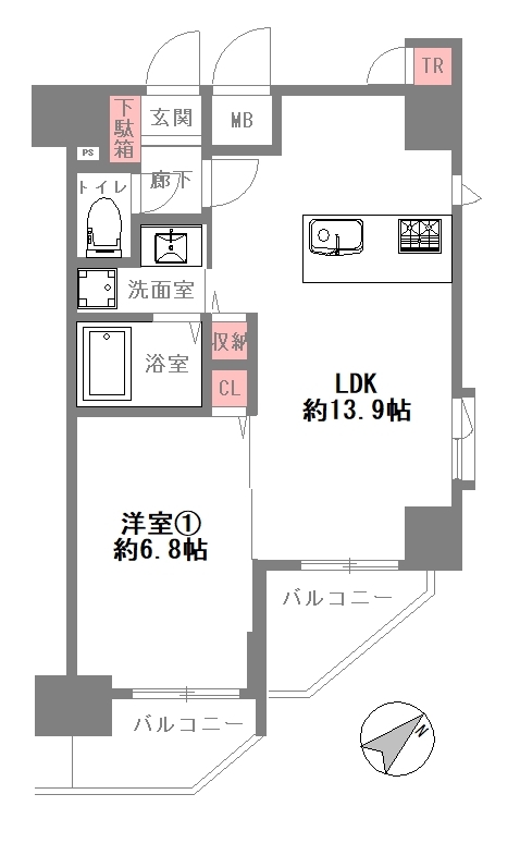 4,690万円 管理費等:10,740円/月 | 総戸数94戸 バルコニーあり 6.88㎡ |