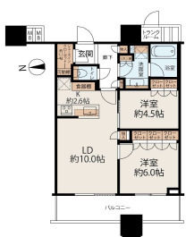 間取2LDK 専有面積壁芯 57.52㎡ 構造鉄筋コンクリート | 物件種目マンション 階建/階地上40階, 地下2階建/9階 築年月2015年4月(築10年11ヶ月) |