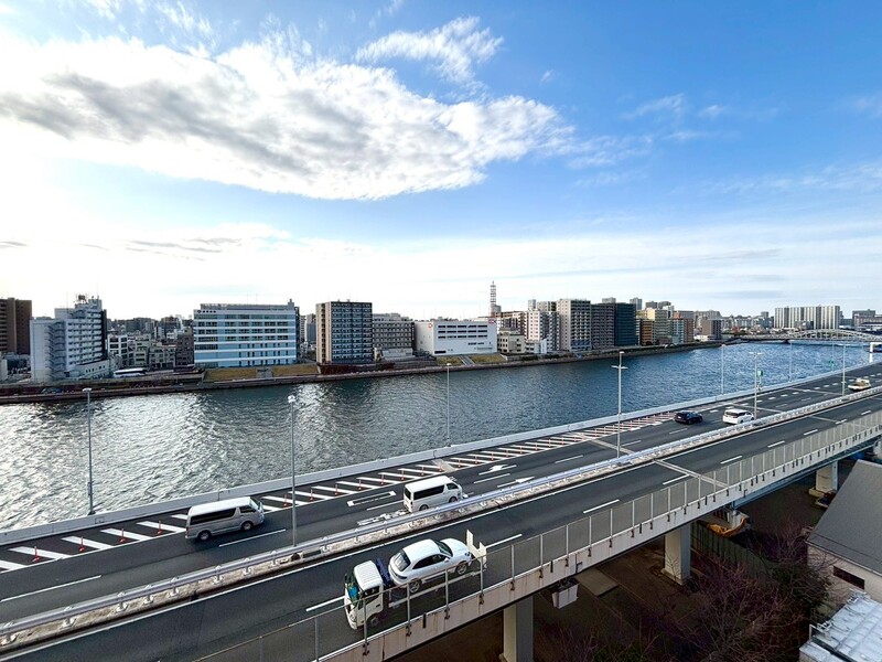 バルコニーから隅田川ビュー♪