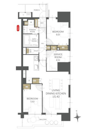 - 洋室 6帖 洋室 5.6帖 S 4.3帖 LDK 15.4帖