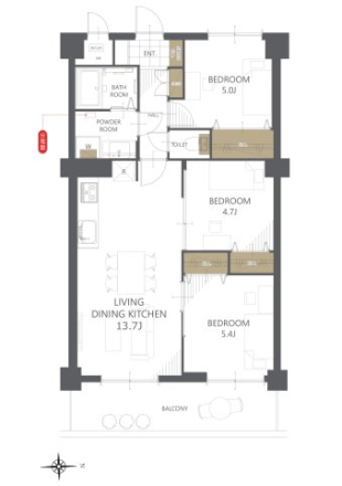 - 洋室 5.4帖 洋室 5帖 洋室 4.7帖 LDK 13.7帖