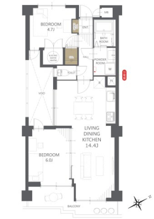 - 洋室 6帖 洋室 4.7帖 LDK 14.4帖