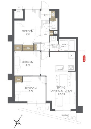 - 洋室 5.9帖 洋室 5.7帖 洋室 4.7帖 LDK 12.9帖