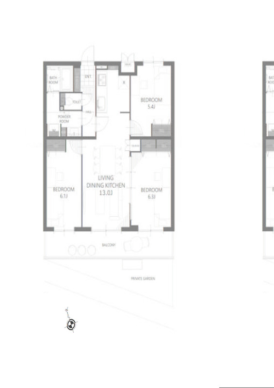- 洋室 6.3帖 洋室 6.1帖 洋室 5.4帖 LDK 13帖