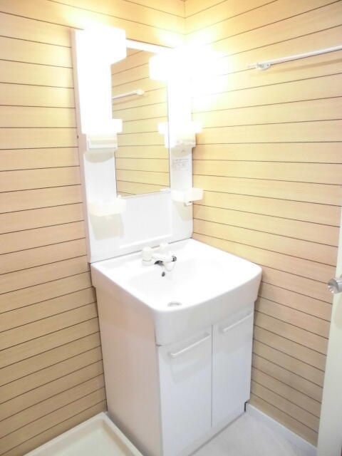 ウッディな温かみのある独立洗面台