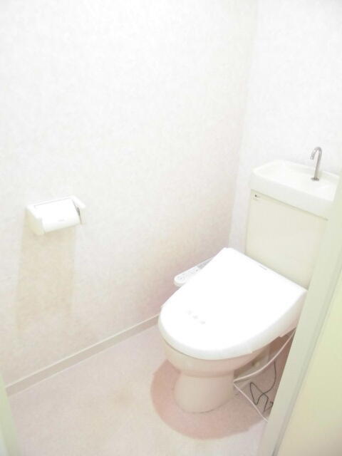 温水洗浄便座付き。上部に棚があります。