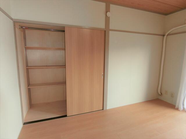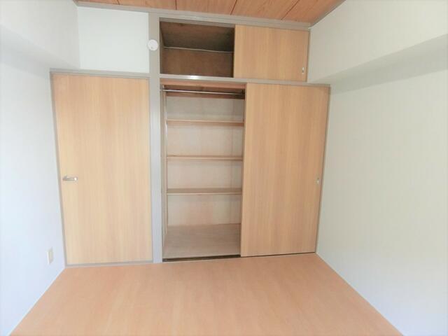 クローゼット 引戸なので扉を開くデットスペースがありません。上部も収納付きです!