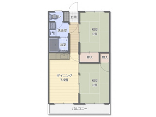 間取2DK 面積49.58㎡ 構造鉄骨造 | 物件種目アパート 階建/階4階建/4階 築年月1977年5月(築48年7ヶ月) |