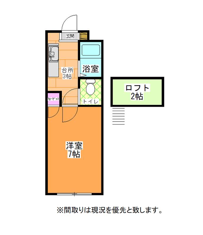 間取1K 面積19.83㎡ 構造鉄骨造 | 物件種目アパート 階建/階3階建/3階 築年月1993年1月1日(築32年11ヶ月) |