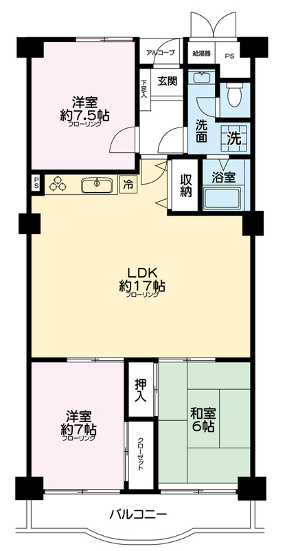 間取3LDK 面積壁芯 87.93㎡ 構造鉄筋コンクリート | 物件種目マンション 階建/階7階建/3階 築年月1981年10月29日(築44年5ヶ月) |